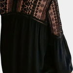 Abraza la belleza bohemia sin esfuerzo con la Blusa de Encaje Sunwoven. Hecha de una suave mezcla de algodón y rayón, esta blusa de inspiración vintage presenta un favorecedor escote en V, mangas acampanadas fluidas y detalles de encaje calado intrincados. Ligera, aireada y atemporal, es la pieza perfecta para elevar tu guardarropa con un toque de elegancia y sofisticación.
