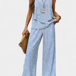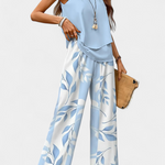 Chic y sin esfuerzo, el conjunto Carmen transforma la simplicidad en elegancia bohemia. Este conjunto para damen cuenta con un top fluido sin mangas y pantalones rectos con un estampado artístico que aporta personalidad sin exceso. Su silueta pulida se adapta a cualquier entorno, brindando frescura y estilo en cada paso. Ideal para quienes buscan un look sofisticado y moderno.