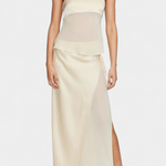 Modernidad y romanticismo se unen en el conjunto Clara, una pieza versátil que combina un top estructurado sin tirantes con una falda midi asimétrica fluida. Perfecto para eventos, este conjunto destaca por sus contrastes transparentes y su drapeado de satén que aporta un toque de sofisticación. ¡Haz de cada ocasión un momento especial con este look elegante!