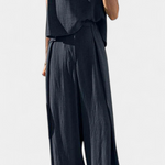 Sutil y sofisticado, el Conjunto Clara está diseñado para ofrecer elegancia sin esfuerzo en los días más cálidos. Con un top sin mangas de corte limpio y pantalones de pierna ancha de talle alto, esta combinación fluida aporta frescura, estilo y libertad de movimiento para cada ocasión. Perfecto para un día de playa o una cena al aire libre, te hará lucir y sentir increíble.