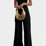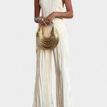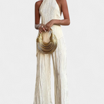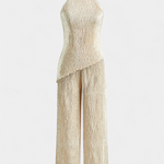 Descubre el minimalismo con impacto en nuestro conjunto Claudia, diseñado para resaltar tu elegancia natural. Este conjunto de ropa presenta un sofisticado top halter asimétrico y un pantalón fluido de pierna ancha, creando una silueta elongada que destaca en cualquier ocasión. Perfecto para vacaciones o un fin de semana especial, su textura plisada añade un toque de dinamismo y estilo, ideal para la primavera y el verano.