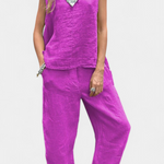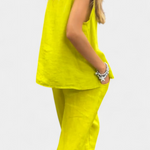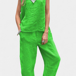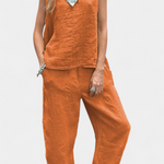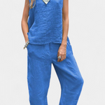 Lola – Conjunto de Chaleco y Pantalón Sin Mangas en Algodón Lino con Estilo Único y Elegante
