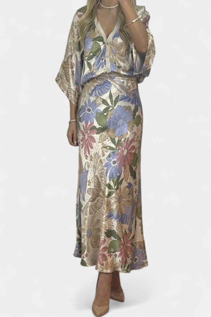 María – Conjunto Elegante de Blusa y Falda Floral para un Look Sofisticado