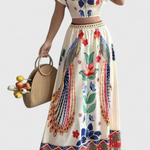 Ligero, alegre y con alma boho, el Conjunto Marisol es la elección perfecta para cualquier mujer que busque transformarse en el centro de atención. Este set combina un top corto con nido de abeja y una falda fluida de silueta amplia, ideal para destacar con estilo en vacaciones, eventos culturales o días soleados. Su diseño único y moderno asegura que te sientas cómoda y chic en cualquier ocasión.