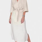 Descubre la sencillez elegante con actitud sofisticada. El vestido Ariadna combina una silueta envolvente con mangas amplias y un escote en V profundo que estiliza con intención. Hecho de algodón y lino, este vestido es perfecto para cualquier evento, ya sea una cena o una reunión casual. El nudo frontal define la cintura con naturalidad, mientras que la abertura lateral y el cierre posterior añaden funcionalidad y un toque sutil.