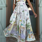 Descubre el vestido Cirila, un diseño que parece salido de un sueño. Este vestido largo floral cautiva con su estampado de fantasía y silueta fluida, ideal para lucir en veranos mágicos. Los delicados cordones en el escote realzan su encanto etéreo, convirtiéndolo en una elección sofisticada para cualquier ocasión especial.