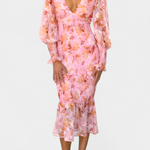 Romántico y femenino, el vestido midi Clara con estampado floral es una opción encantadora para días soleados y ocasiones especiales. Su escote en V y la cintura fruncida realzan la silueta, mientras que las mangas largas de gasa añaden ligereza y sofisticación. Este vestido es ideal para disfrutar de momentos inolvidables bajo el sol, ¡no te lo querrás perder!