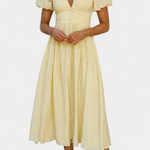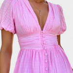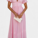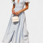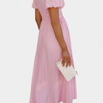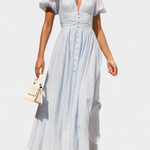 Sumergete en un mundo de suavidad y elegancia con el vestido Clara. Su escote en V profundo y las mangas abullonadas crean una vibra romántica, ideal para esos días de verano. La falda fluida, con abertura en pliegues, se mueve con gracia mientras caminas, ofreciendo un look fresco y atractivo. El cinturón ajustable en la cintura define tu silueta con delicadeza, haciendo de este vestido una elección perfecta para cualquier ocasión.