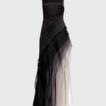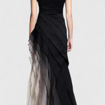 Descubre el vestido Claudia, una pieza elegante y ligera que destaca en cualquier evento. Su silueta sin mangas y las capas fluidas se fusionan en un degradado de tonos que va del negro intenso al marfil suave, creando un efecto visual cautivador. Con un escote barco que realza la figura con gracia, este vestido es perfecto para galas, cenas y celebraciones especiales. Dale un toque de sofisticación a tu armario con esta opción trending.