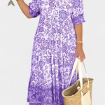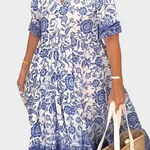 Relajado y encantador, el Vestido Elcira combina un vibrante estampado floral azul con un corte amplio y fluido, ideal para esos días soleados que invitan a disfrutar al aire libre. Su escote en V y volantes suaves en el bajo aportan un aire bohemio, convirtiéndolo en la elección perfecta para el día a día con estilo. Este vestido es ideal para vacaciones, escapadas de fin de semana y ocasiones especiales bajo el sol.