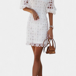 Descubre la frescura mediterránea con el vestido corto de encaje Estela, una pieza coqueta y encantadora. Este vestido ajustado celebra tu silueta con elegancia, gracias a su tejido de encaje floral que aporta textura y delicadeza. Las mangas abullonadas y el escote corazón realzan tu estilo con un toque romántico, perfecto para cualquier ocasión casual.