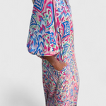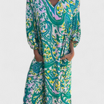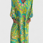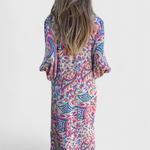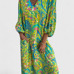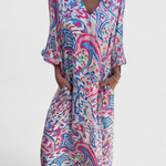 Llamativo, relajado y lleno de carácter, el vestido Isabel es la elección perfecta para quienes buscan un look casual y elegante. Con un escote en V que estiliza el cuello de forma natural y un estampado abstracto cautivador, este vestido maxi bohemio te ofrece libertad y comodidad en cada paso. Su silueta fluida y mangas cortas lo convierten en una pieza imprescindible para cualquier ocasión.