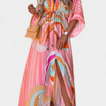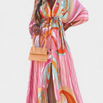 Joelle es una oda al color y la libertad. Con su estampado arcoíris vibrante, escote en V y mangas murciélago, este vestido maxi fluye con gracia y comodidad. Perfecto para vacaciones, días soleados y esos momentos especiales donde quieras brillar sin esfuerzo, Isabel te hará sentir única y espectacular.