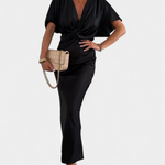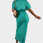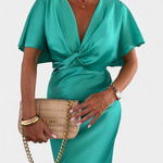 Descubre el vestido Isidora, la combinación perfecta de elegancia y comodidad. Este vestido, en un tono liso, resalta tu figura con su escote en V envolvente y nudo frontal cruzado, ofreciendo un look moderno para cualquier ocasión. Ya sea que estés planeando un día casual o una noche especial, este vestido se adapta a tu estilo. Con sus mangas cortas y su diseño fluido, te sentirás tan bien como te ves.