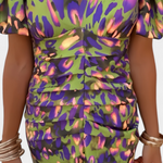 El vestido Wibia está diseñado para robar miradas con su audaz estampado y su silueta esculpida. Con mangas abullonadas, escote en V y un cuerpo fruncido que realza las curvas, esta pieza celebra el color y la forma con energía y sofisticación. Ideal para eventos, cócteles o cualquier ocasión donde quieras destacar.