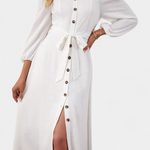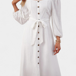 Descubre el vestido Marina, la fusión perfecta de feminidad y sofisticación. Con su escote recto y hombros descubiertos, este vestido crea una vibra elegante y moderna. La botonadura frontal y el cinturón anudado resaltan tu figura, mientras que las mangas largas y el tejido vaporoso brindan comodidad y fluides en cada movimiento. Ideal para ocasiones especiales o cenas, este vestido se convertirá en tu favorito.