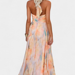 Artístico, etéreo y con encanto veraniego, el vestido Nora es una oda a la feminidad libre. Su silueta fluida y el cuello halter estilizan con delicadeza, mientras que la espalda descubierta aporta frescura y sensualidad. Con un hermoso estampado tipo acuarela, este vestido transforma cada movimiento en una pincelada de color, convirtiéndote en el centro de atención en cualquier ocasión. Perfecto para mujeres que buscan un toque único y fresco en su vestuario.