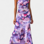 Descubre el vestido Paloma, una pieza que irradia sensualidad y elegancia. Este vestido floral es ideal para cualquier fiesta o vacaciones, combinando una silueta ceñida con una única manga asimétrica que realza tu figura. La malla elástica aporta una textura exquisita y un acabado sofisticado que llega hasta el tobillo, haciéndote destacar en cualquier ocasión.