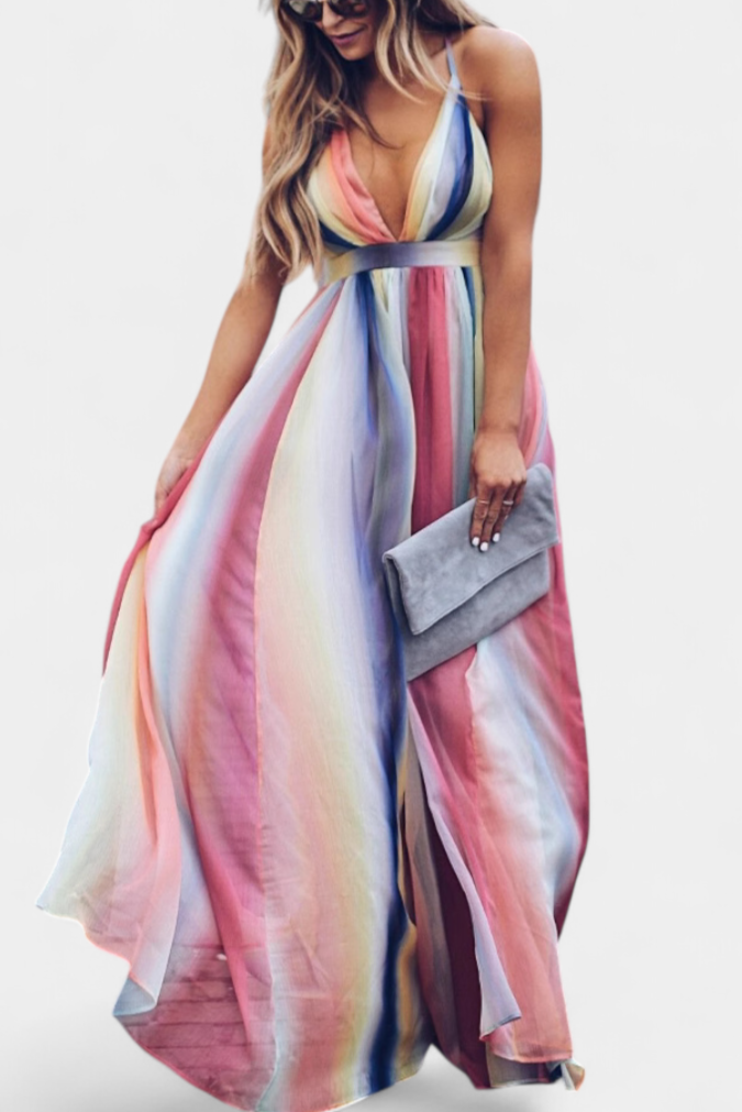Valentina – Vestido Maxi de Rayas Multicolor para Brillar en Cualquier Ocasión