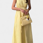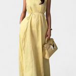 Frescura natural y elegancia sencilla definen al vestido Alba. Con una caída ligera y un diseño sin mangas con cuello redondo, este vestido tipo A ofrece un ajuste cómodo y favorecedor. El lazo fino en la cintura añade un toque sutil y relajado, ideal para los días cálidos y la sencillez con estilo.